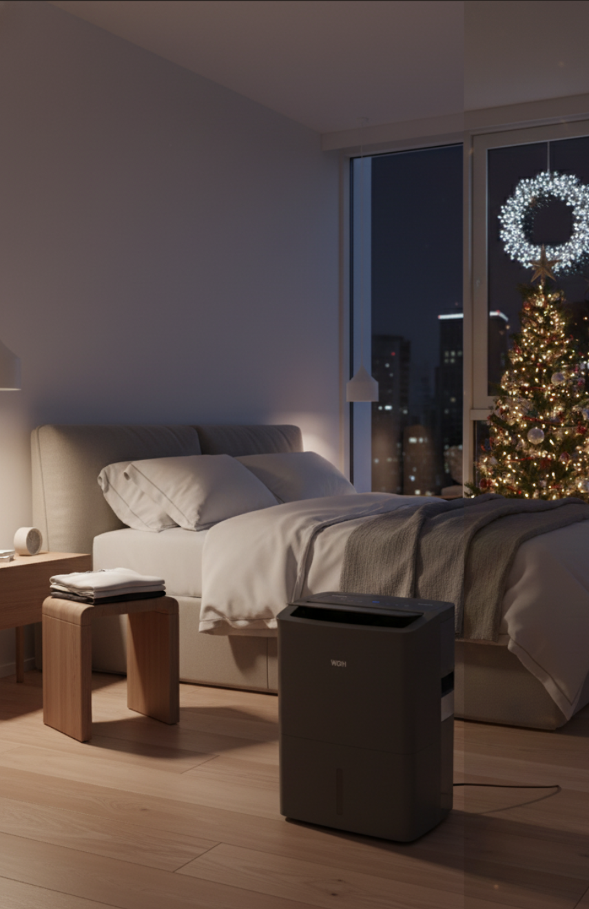 W takich przypadkach przydatny może być cichy osuszacz powietrza, taki jak nasz WDH-214US. Pomaga on stale obniżać wilgotność bez zakłócania snu, zmniejszając w ten sposób kondensację na oknach i ryzyko rozwoju pleśni.